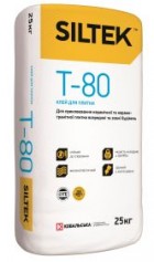 Застосування. Для облицювання всіх видів горизонтальних і вертикальних поверхонь, що не деформуються, всередині будівель керамічними та іншими облицювальними плитками з водопоглинанням не менше 3% (крім мармурових). Для кріплення плитки зовні будівель, а також при облицюванні плиткою з водопоглинанням менше 3%, застосовувати суху будівельну суміш Siltek Т-80 із використанням композиції Siltek Е-120 замість води.