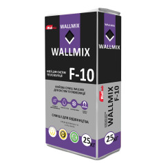 Приготування розчинової суміші. Суху суміш WALLMIX F-10 засипати в ємність з чистою водою кімнатної температури в пропорції 0,18-0,20 л на 1 кг суміші (4,5-5,0 л на мішок 25 кг). Ретельно перемішати мішалкою або низькообертовим дрилем з насадкою до однорідної консистенції без грудок і згустків, після чого витримати 5 хвилин і знову перемішати. Розчинова суміш зберігає свої споживчі властивості протягом 2 годин.