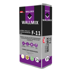 Приготування розчинової суміші. Суху суміш WALLMIX F-11 засипати в ємність з чистою водою кімнатної температури в пропорції 0,19-0,21 л на 1 кг суміші (4,75-5,25 л на мішок 25 кг). Ретельно перемішати мішалкою або низькообертовим дрилем з насадкою до однорідної консистенції без грудок і згустків, після чого витримати 5 хвилин і знову перемішати. Розчинова суміш зберігає свої споживчі властивості протягом 2 годин.