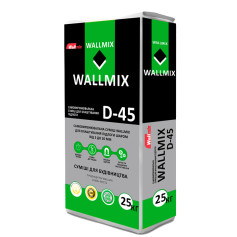 Суміш WALLMIX D-45 призначена для вирівнювання бетонних основ і цементно-піщаних стяжок з подальшим укладанням таких покриттів, як лінолеум, ковролін, ламінат, керамічна плитка тощо всередині сухих житлових, громадських, адміністративних та побутових приміщень. Має можливість машинного нанесення. Рекомендована товщина шару – від 3 до 20 мм.