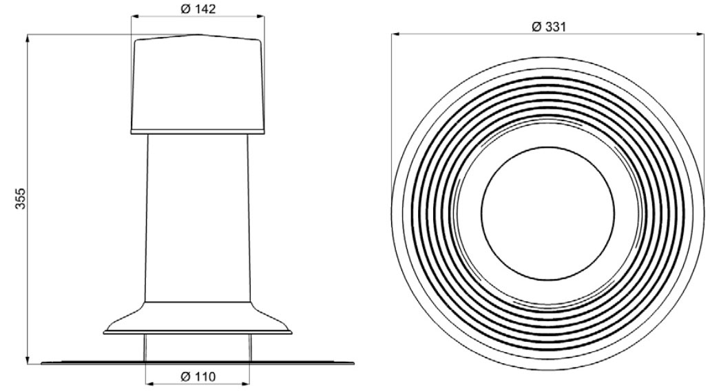 Вентиляційний вихід для плоскої покрівлі Ø110