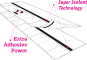 На черепиці застосована суперклейова технологія, суцільна смуга бітумного клею, яка склеює гонти в єдиний водонепроникний захисний шар.