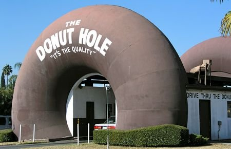 Під синім небом Ла-Пуенте випаленим сонцем у Каліфорнії знаходиться одна з найдивовижніших пекарень у світі. У будівлі, що виглядає як два непомірно величезні пончики, продається те, що рекламується — пончики і ще раз — пончики. Ця пекарня працює тут із 1968 року. Заїжджайте через один 8-метровий пончик зі скловолокна, щоб замовити та отримати пончики з одного боку будівлі, та виїжджайте з іншого боку, отримавши замовлення. Це може здатися досить дивним способом, замовити коробку пончиків, але такій будівлі, як ця, звичайно, вдається залучати величезну кількість клієнтів.