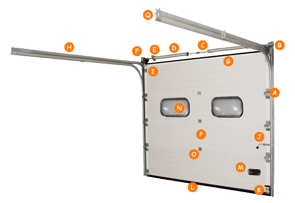 При виготовленні найбільш відповідальних елементів промислових секційних воріт використовують посилені комплектуючі з підвищеним ресурсом роботи. А для безпечної експлуатації воріт ми рекомендуємо встановлювати системи механічного блокування полотна при розриві пружин та обриві тросів.