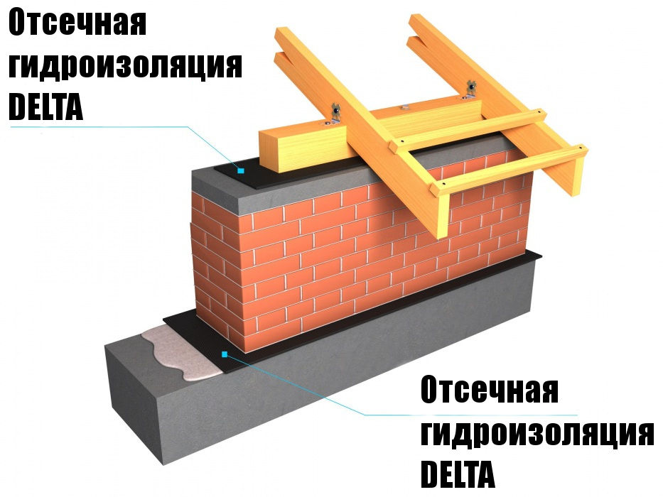 Залежно від типу облицювальної цегли, що використовується, і якості заповнення розчином швів, волога може при сильній зливі проникати через зовнішню цегляну стіну і потрапляти у внутрішній простір кладки. З цієї причини в основі цегляних облицювань встановлюються L- або Z-подібні смуги відсікової гідроізоляції DELTA-MWS. Одночасно ці смуги також використовуються для гідроізоляції віконних та дверних прорізів та підвіконь, щоб при дощі вода надійно утримувалася зовні.