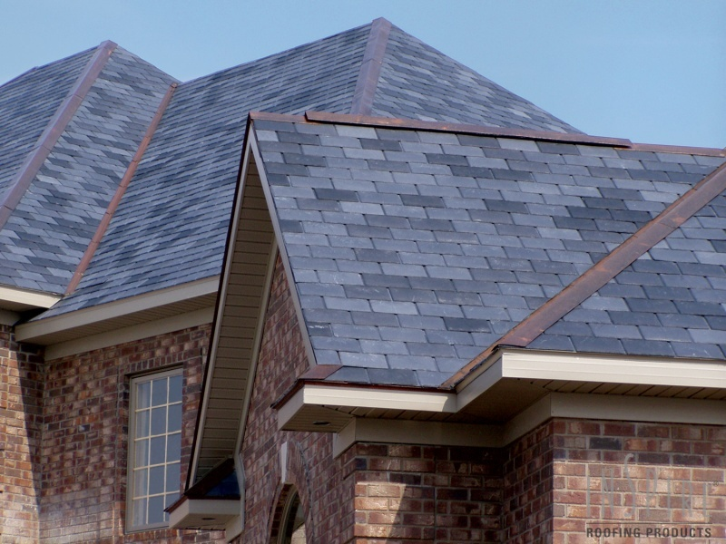 6. Особливістю синтетичного сланцю є те, що виробник у заводських умовах робить спеціальні конькові елементи, що безумовно полегшує монтаж композитного сланцю, при цьому забезпечується відмінна гідроізоляція покрівлі. Покрівля зі спеціальними коньковими елементами для штучного сланцю набуває абсолютно неповторного вигляду, який неможливо відтворити, використовуючи звичайний натуральний камінь.
