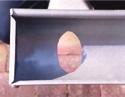 ![]() | 4. Відзначаємо відстань, на якій має бути встановлений водоприймач. Випилюємо отвір ножівкою по металу. |