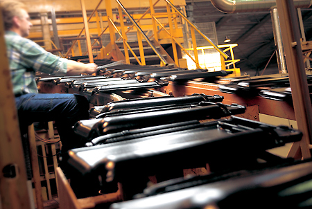 На наступному етапі сформовані глиняні пластини сушать у особливих камерах, постійно контролюючи вологість та температуру. Завдяки рівномірному просушуванню, майбутня керамічна черепиця втрачає зайву вологу, цей процес запобігає утворенню тріщин та зміні форми в результаті нерівномірної усадки.
