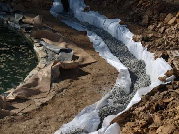 Функції, які виконує геотекстиль. Для правильного облаштування дренажної системи необхідно створити фільтруючий шар. Саме ця роль є головною для геотекстилю. Які функції він виконує? Насамперед, геотекстиль відповідає за забезпечення швидкого та ефективного осушення територій, а також він сприяє зниженню рівня ґрунтових вод. Завдяки геотекстилю запобігається замулювання дренажних труб частинками ґрунту та засмічення дренажного шару. Також геотекстиль має дуже високу здатність пропускати воду. Завдяки цьому зайва волога швидко виводиться дренажною системою. Між грунтом (покриттям) і заповнювачем повинен існувати розділовий шар. Найкраще з цим завданням справляється саме геотекстиль. Він чудово виконує функції розподілу навантаження та відведення води, завдяки невеликій вазі, даний матеріал легко укладається та чудово розвантажує несучі конструкції. Нагадаємо, що виїмка ґрунту для створення дренажної конструкції незначна. Тому часто для вирішення всіх поставлених завдань використовуються перфоровані дренажні труби (дрени), які навколо обертають геотекстилем для запобігання засміченню або замулюванню труби, а також отворів у ній.