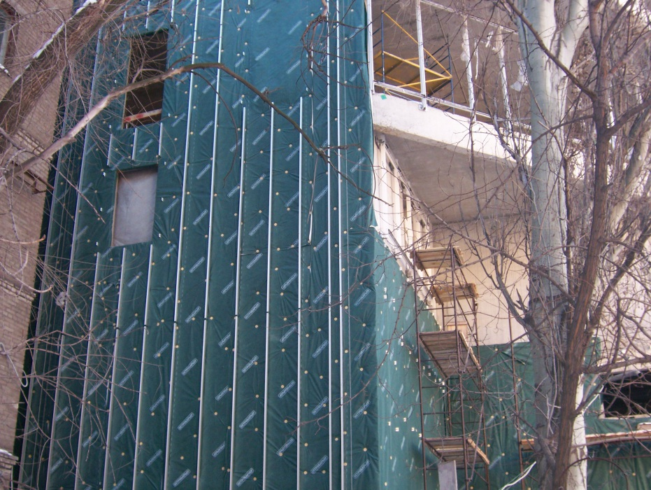 Конструкція навісних вентильованих фасадів також передбачає влаштування вітрозахисту.