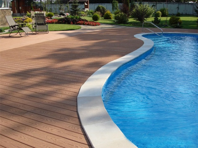 Покриття, при облаштуванні якого використовується композитна терасна дошка, стане прикрасою Вашої ділянки, додасть завершеного вигляду басейну, забезпечить комфорт користування. Будучи довговічним матеріалом, терасна дошка позбавить Вас на тривалий час від грошових витрат для заміни покриття, а також турбот і проблем, пов'язаних з проведенням таких робіт. До того ж, на відміну від дерева, терасна дошка ДПК не вимагає спеціального професійного догляду, щорічного фарбування та обробки дорогими складами, що забезпечують водостійкість, негорючість та інші характеристики. Терасна дошка стане гідним, довговічним та красивим оформленням території біля Вашого басейну!
