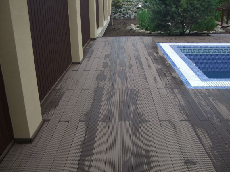 Дошка Bruggan має два варіанти лицьової поверхні і ви самі зможете вибрати, яка з них найбільше підходить у вашому випадку - імітує спил дерева або "рифлену" палубу. Якість терасної дошки Bruggan підтверджується профільними стандартами якості європейського зразка, також як і відсутність шкідливих речовин, тому якщо у вас є маленькі діти, які обожнюють побігати босоніж, вибирайте цю дошку для оформлення терас, внутрішніх двориків та басейнів.