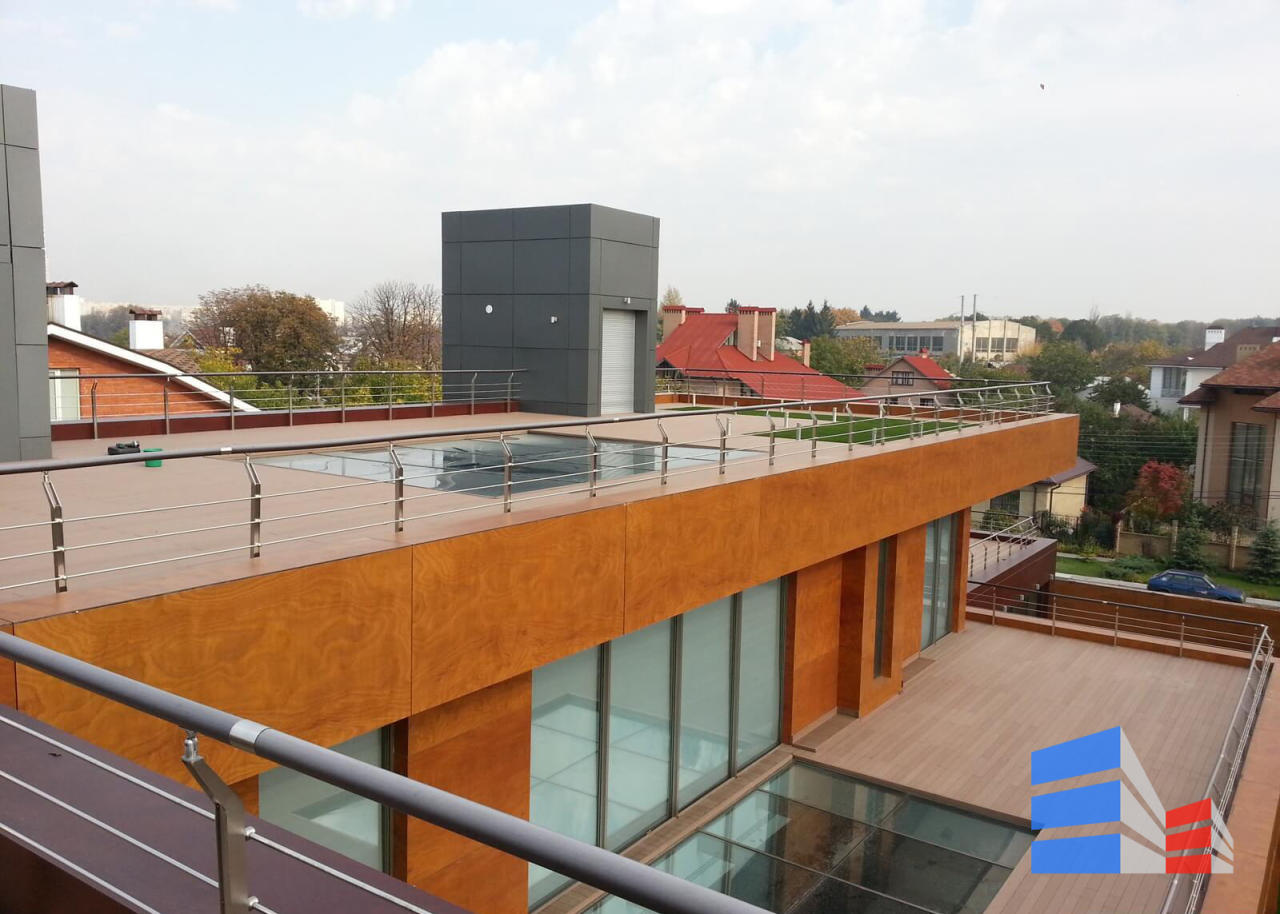 Тераска, представлена в трьох колірних рішеннях, відрізняється несприйнятливістю до прямого сонячного проміння. Її гарний натуральний відтінок не вигорить і залишиться насиченим протягом усього терміну експлуатації. Матеріал дозволяє втілювати в життя неординарні дизайнерські рішення, оскільки одна з його сторін має тиснення, а інша гладка.
