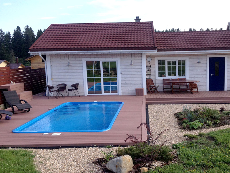 Міцність, надійність та довговічність зумовили широке застосування композитної терасної дошки для застилання простору навколо закритих та відкритих басейнів, терас заміських котеджів, підлоги на ганках та на балконах, берегових пірсів та причалів, терас ресторанів та кафе, патіо, дитячих майданчиків та ін.