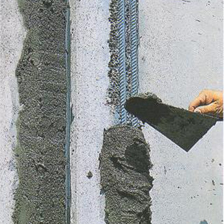 Підготовка основи. Кромки дефектної ділянки слід оконтурити алмазним диском перпендикулярно поверхні на глибину щонайменше 10 (мм). Вибрати бетон з дефектної ділянки на глибину не менше 10 мм, використовуючи легкий перфоратор, голчастий пістолет. Стінки ділянки повинні бути вертикальними, а основа рівною і шорсткою. Для хорошого зчеплення на бетонній поверхні необхідно створити шорсткість, заглиблення не менше 5 (мм). Основа має бути очищена від фарби, жиру, масел, цементного молочка. Для ідеального очищення поверхні ділянки від бруду та пилу рекомендується використовувати стиснене повітря компресора та воду під тиском. Кромки дефектної ділянки слід оконтурити алмазним диском перпендикулярно поверхні на глибину щонайменше 10 (мм). Вибрати бетон з дефектної ділянки на глибину не менше 10 мм, використовуючи легкий перфоратор, голчастий пістолет. Стінки ділянки повинні бути вертикальними, а основа рівною і шорсткою. Для хорошого зчеплення на бетонній поверхні необхідно створити шорсткість, заглиблення не менше 5 (мм). Основа має бути очищена від фарби, жиру, масел, цементного молочка. Для ідеального очищення поверхні ділянки від бруду та пилу рекомендується використовувати стиснене повітря компресора та воду під тиском.