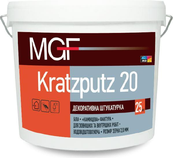 MGF Kratzputz K 15/20 декоративна штукатурка "баранчик" — акрилова штукатурка "камінцевої" фактури застосовується для декоративного оздоблення фасадів та стін з підвищеними експлуатаційними вимогами.