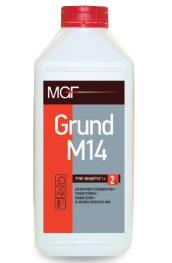 MGF 1:4 Grund M14 грунт-концентрат застосовується для просочення та зміцнення гіпсових та цементних штукатурок, гіпсокартону, легкого бетону, волокнисто-цементних основ, цегли, ДВП, ДСП та шпалер перед нанесенням фарб, шпаклівок та будівельних розчинів.