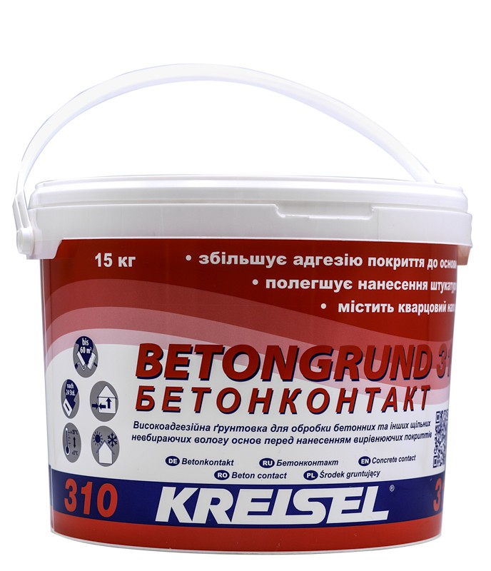 Готова до використання високоадгезійна грунтовка бетонконтакт для обробки бетонних та інших щільних основ, що не вбирають вологу, перед нанесенням вирівнюючих покриттів