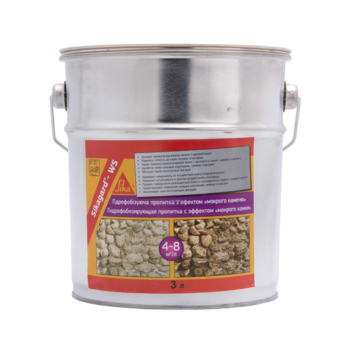 Sikagard WS — акрилове, декоративне, гідрофобізуюче просочення для різних мінеральних поверхонь з ефектом "мокрого каменю", готове до застосування.