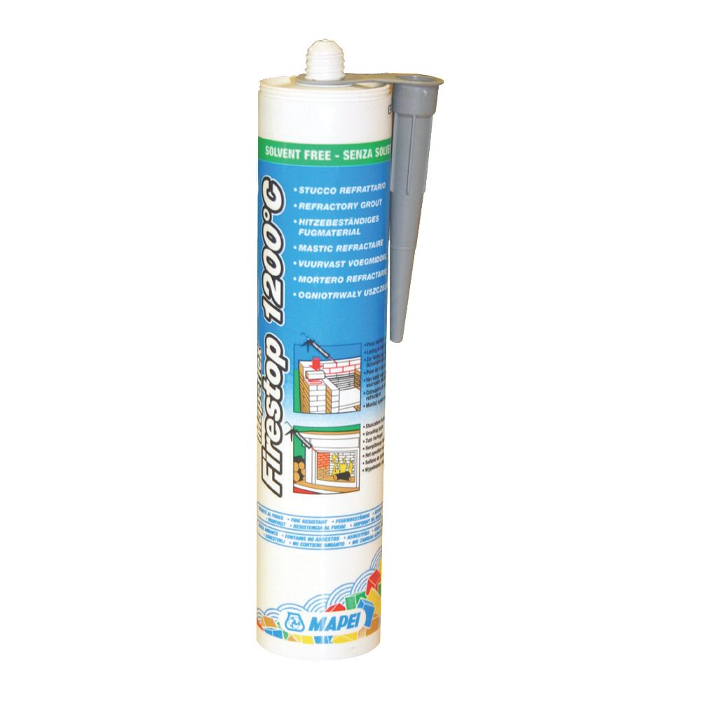Призначення. Mapeflex Firestop 1200 °C — однокомпонентний жорсткий силікатний вогнетривкий шовний заповнювач швидкого схоплювання, стійкий до впливу вогню, високих температур та диму, не містить азбесту. Ідеально підходить для жорсткого заповнення швів у димарях, печах, радіаторах, жаровнях, жарових трубах та протипожежних перегородках. Також підходить для заповнення швів та укладання вогнетривкої цеглини при новому будівництві або технічному обслуговуванні зон, які знаходяться під постійним безперервним впливом вогню або спека з температурою до +1200 °C та тимчасовим підвищенням температури до +1600 °C.