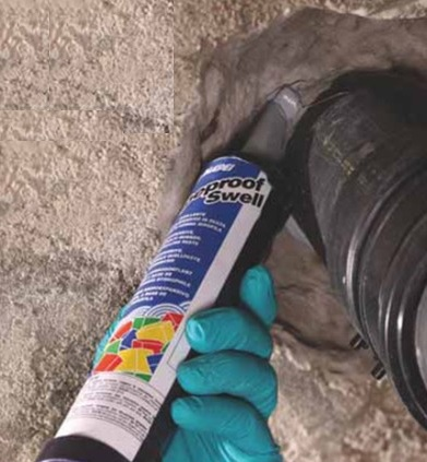 Однокомпонентна герметизуюча паста, що розширюється під дією води, використовується для гідроізоляції та заповнення тріщин у бетоні.