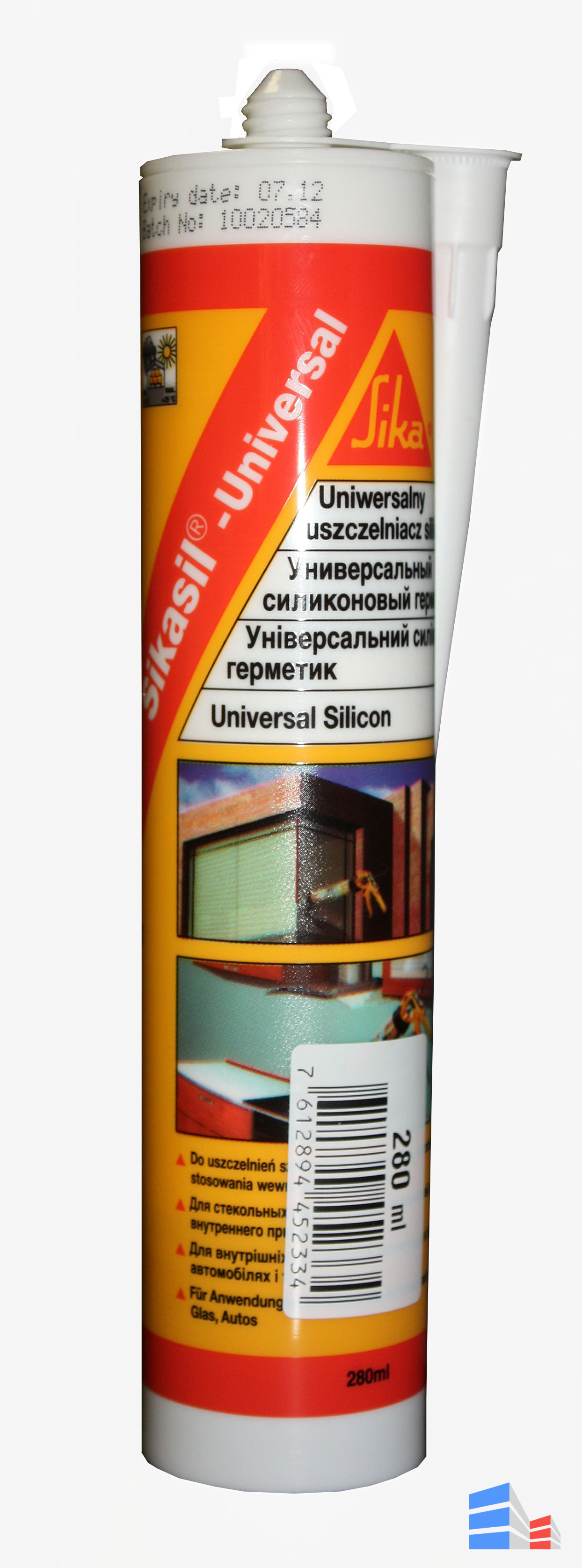 Застосування. Герметик Sikasil Universal підходить для різних гладких поверхонь (наприклад скло, кераміка, алюміній). Для внутрішніх та зовнішніх робіт при склінні вікон та віконних рам, встановлення вентиляційних систем, ванн, душових кабін тощо. буд.