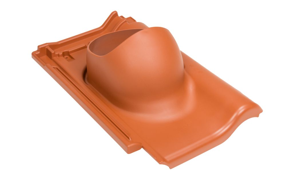 Прохідний елемент має абсолютну схожість з черепицею і повністю зливається з покрівлею. Розмір прохідного елемента 477×294 (мм). Встановлюється при монтажі та на готову покрівлю.