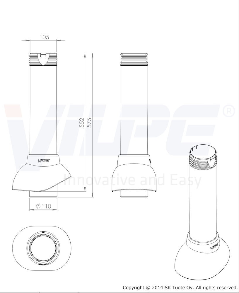 Неізольовані виходи рекомендуються для вентиляції стояків каналізаційних в регіонах з м'яким кліматом. У регіонах із безморозними зимами каналізаційний вихід можна оснащувати ковпаком-дефлектором. Вентиляційний вихід з'єднується з каналізаційним стояком за допомогою гофрованої Vilpe труби.