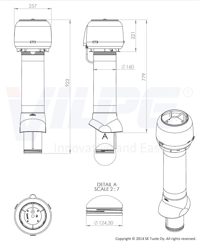 Клас захисту вентилятора Vilpe E120P/125/700 — IP34. Вентилятори Vilpe відносяться до класу відцентрових. Вони тихі, ефективні та гарантують комфортність проживання.