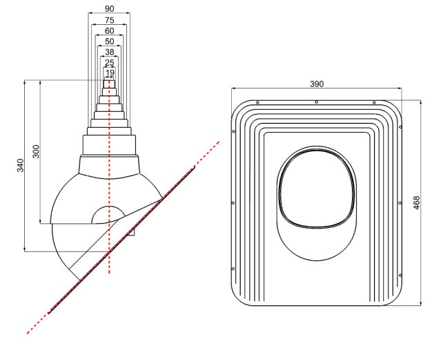 Антенний вихід STANDARD дозволяє легко та герметично виводити антенну щоглу через поверхню покрівлі. Насадка служить для адаптації вихідного отвору до діаметру щогли в діапазоні 19-90 (мм).