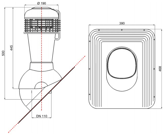 К42 — Вентиляційний вихід WIRPLAST Standard Ø110 з вентилятором для покрівлі з бітумної черепиці.