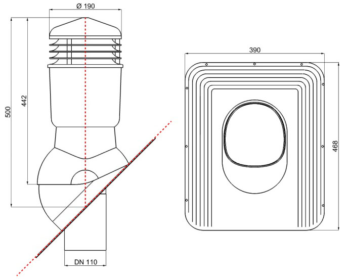 Пристосовані для монтажу на дах із бітумної покрівлі. Колірна гамма вентвиходів дозволяє їм гармонувати із зовнішнім виглядом покрівлі та естетично вписуватися в існуючий ландшафт.
