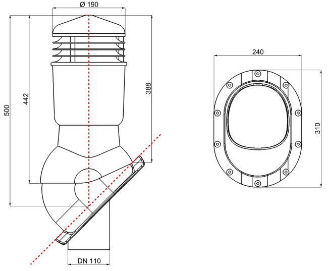 Вентиляційний вихід WIRPLAST PERFEKTA Ø110 (мм) утеплений для металочерепиці, профнастилу та фальцевої покрівлі.