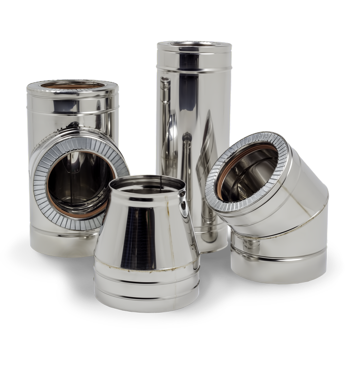 Внутрішня труба зроблена зі сталі, товщина якої становить 0,6 мм, 0,8 мм, 1 мм. Вона бере на себе вплив агресивного середовища та продуктів згоряння. Технологія виробництва димоходів забезпечує стійкість внутрішньої труби до прогоряння, а також впливу корозії та кислот.