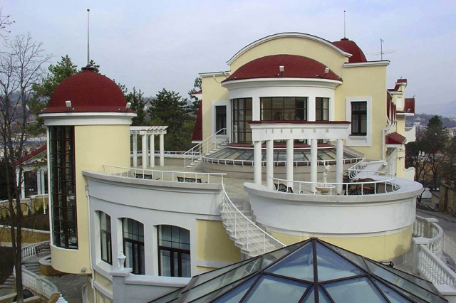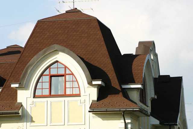 Черепица "Антик" отличается чешуйчатой формой, что позволяет с особой эффективностью использовать ее в сложных архитектурных проектах, когда при наличии криволинейных форм и различных скатов возникает проблема передачи нюансов конфигурации крыши.