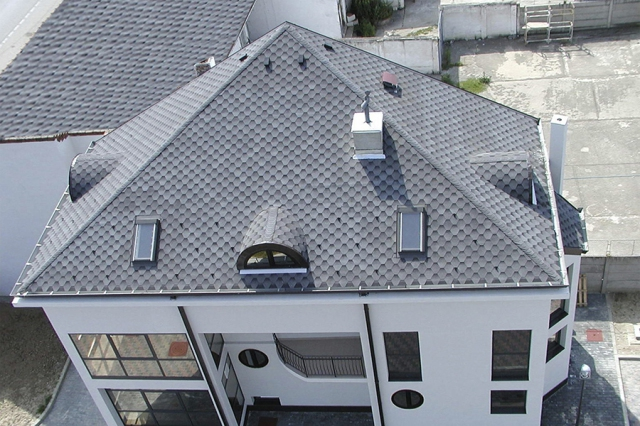 Черепица "Нордик", благодаря сочетанию оригинальной шестигранной формы и особых переливов цветовых оттенков, позволяет добиться уникального «мозаичного» эффекта на поверхности готовой кровли.