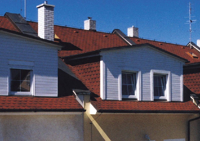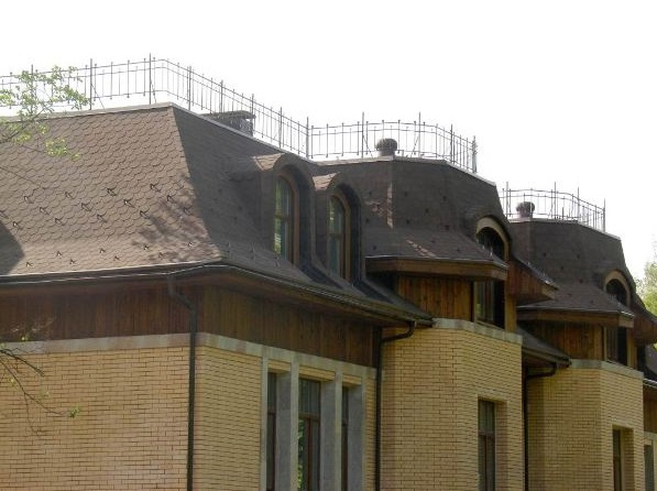 Необычные "лепестки" черепицы, похожие на кровлю замков Старого Света, составляют на кровле изысканный орнамент.