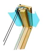 Система "Погодної вентиляції" у вікнах для даху FAKRO дозволяє провітрювати приміщення цілий рік незалежно від погоди. Ручка та спеціальна засувка дозволяють фіксувати стулку у 4 положеннях провітрювання. З метою запобігання конденсату, мансардні вікна FAKRO оснащені ексклюзивним антиконденсатним вентиляційним клапаном. Цілий рік він забезпечує постійний регульований приплив свіжого повітря при закритому вікні та виводить зайву вологу з приміщення, сприяючи правильному функціонуванню вентиляції в мансарді. Клапан V10 має пропускну здатність 10 м3/год, клапан V35 — до 38м3/год. Вентиляційний клапан розташований у віконному коробі і, отже, не зменшує корисну площу скління вікна. Механізм засувки клапана дозволяє регулювати потік повітря, що надходить у приміщення. Спеціальний фільтр захищає від проникнення в мансарду комах та пуху.