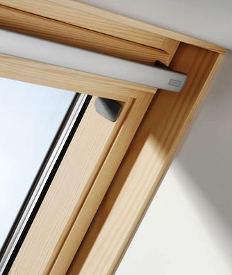 Мансардне вікно з комбінованим відкриванням із клеєної деревини (сосна), має три шари лакового покриття. Два типи відкривання: по центру та знизу вгору на 45°.