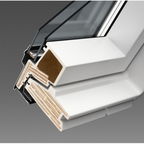 Горищне вікно Velux GPU має подвійну вісь повороту. Рама виготовлена з ламінованого дерева. Для ламінації використовують поліуретан. Завдяки цьому вікно абсолютно вологостійке і може бути експлуатоване у ванній кімнаті або приміщенні з високою вологістю без шкоди для матеріалів вікна.