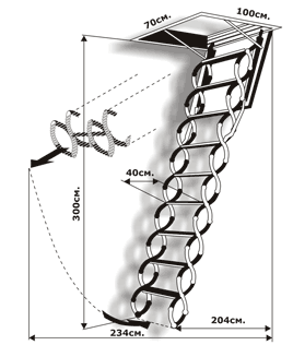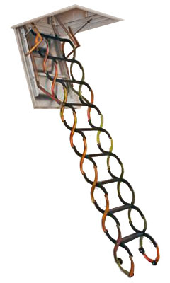 Розсувні металеві горищні сходи, що працюють за принципом стиснення.