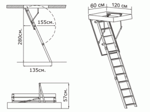 | Радіус відкриття сходів, (см) | 155 | |