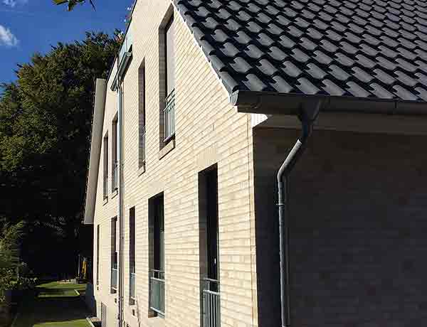 Клінкерна цегла виконана в сірому кольорі і відрізняється рельєфною шорсткою поверхнею — так облицьована ним будівля набуває цікавого зовнішнього вигляду.
