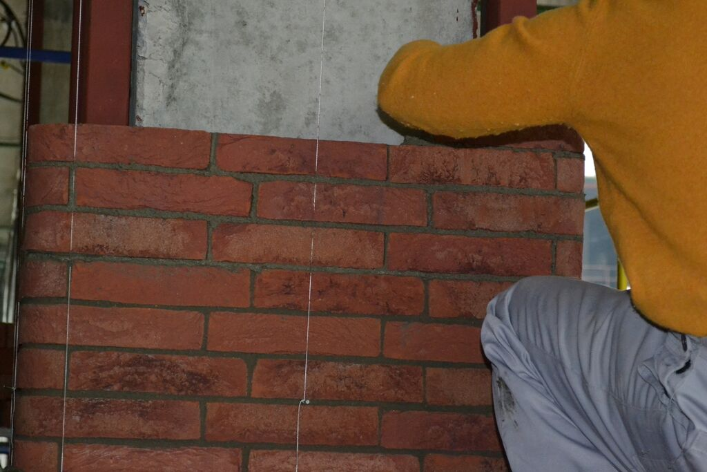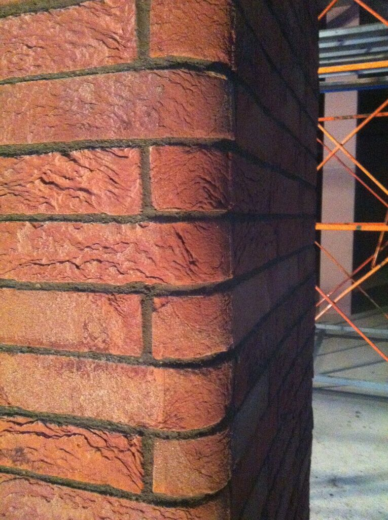 Червона цегла з піском різного механічного складу, кожна цегла набуває різних відтінків, збагачуючи кладку особливими кольорами від сірого до фіолетового та чорного.