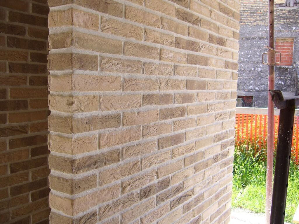 Поєднання клінкерної цегли Portofino, Giallo Bruciato, Venecia та Roma доповнене білим розчином.