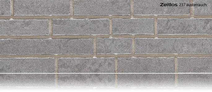 Стерильно білим відшпакльований або одноколірно оброблений фасад — монохромні поверхні на сьогоднішній день не є фаворитами. Zeitlos — це надтовста 14 (мм) фасадна плитка з патиною, що має морозостійку екструдовану якість високотехнічно обпаленої глини. Різна ширина швів та створені неповторні кольорові мікси з 9 підібраних один до одного кольорів дозволяють створювати нескінченні оригінальні варіанти облицювання фасаду плиткою Zeitlos.