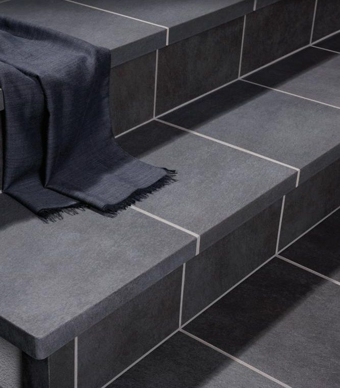 | 9441 "Loft" Ступінь кутова 340х340х35х11 (мм) Колір: вся гама | 8108 Плінтус 294х73х8 (мм) Колір: вся гама | 8109 Плінтус 394х73х8 (мм) Колір: 635, 645 | 9000 Кут під ступінь, зовнішній 157х60х60х11 (мм) Колір: вся гама | 0331 Мозаїка 294х294х10 (мм) Колір: вся гама |