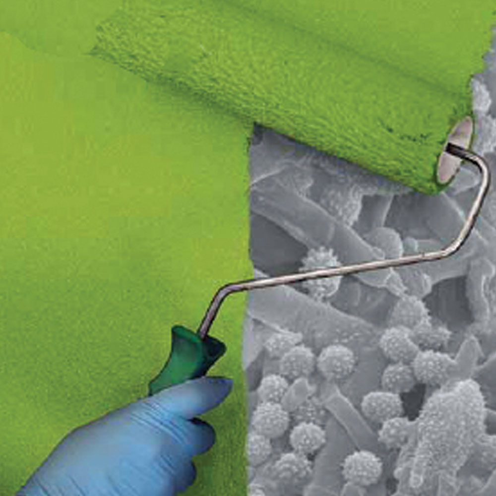 Область застосування. Для фарбування стінок, які можуть зруйнуватися від дій цвілі. Фарба забезпечує довготривалий захисний шар, який запобігає появі цих мікроорганізмів. Оброблені поверхні мають тривалий термін експлуатації завдяки водовідштовхувальним і паропроникним властивостям фарби.