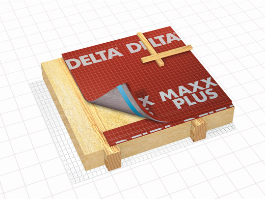 Застосування — гідробар'єр DELTA-MAXX PLUS укладається на кроквяні ноги, безпосередньо на утеплювач без повітряного прошарку. Дозволяється монтаж на суцільний дерев'яний настил. Нахльост повинен бути прибл. 10 (см). Після видалення захисної стрічки з самоклеючих смуг прогладьте місце нахльосту рулонів — водонепроникне та повітронепроникне з'єднання рулонів буде забезпечене миттєво.