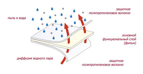 Активна багатошарова пароізоляційна мембрана допускає мінімальну дифузію водяної пари.Внутрішній функціональний шар т. зв. "фільм", разом із надійним захистом від пари, за певних вологих умов забезпечує можливість мікродифузії. Ця властивість "активної" пароізоляції повністю виключає виникнення "ефекту поліетиленового пакета", що призводить до утво...